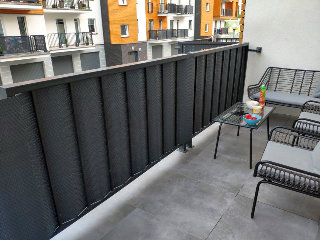 Krycí balkonová zástěna z umělého ratanu je ideálním doplňkem Vašeho balkonu. Je praktickou ochranou před větrem, je odolná vůči povětrnostním vlivům a UV záření. Pokud toužíte po soukromí před nežádoucími pohledy zvědavých sousedů je zástěna Vaše ideální volba. Balkonová zástěna je nabízena v různých rozměrech. Je vyrobena z pevného materiálu s kvalitním stíněním, je vodotěsná a velmi odolná. Doporučujeme na balkon, zahradu nebo terasu. 900 g/m2. Možnost zkrátit na libovolnou délku, materiál se netřepí a netrhá.