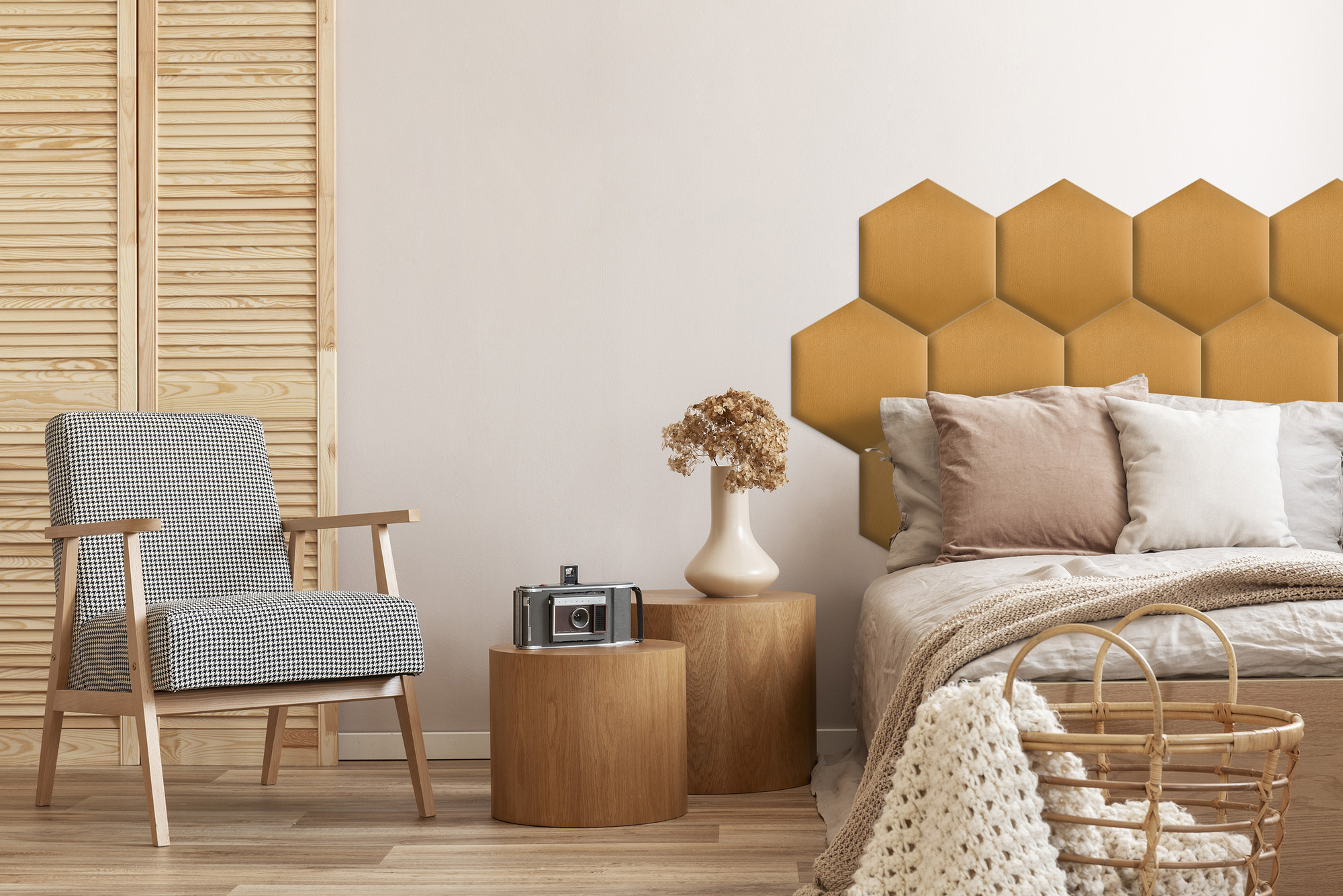Čalouněné panely jsou dostupné v módních trendových barvách v různých velikostech a tvarech. Jsou vyrobeny z MDF desek s pěnovou výplní. Panely jsou potaženy různými materiály od kvalitní velurové látky s jemným leskem až po Eko kůži. Doplňte čalouněné panely za postel do ložnice a vytvořte si útulný prostor pro odpočinek s posílenou zvukovou a tepelnou izolací.