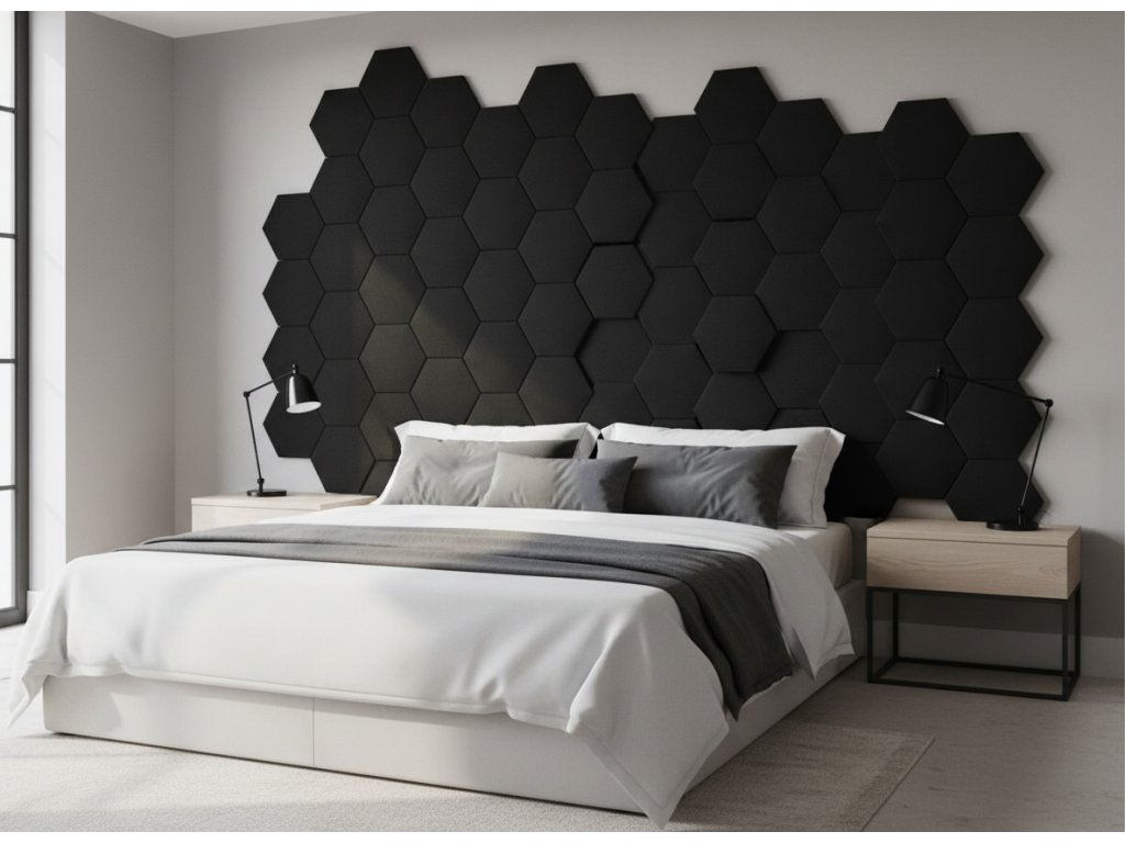 Čalouněný nástěnný panel HEXAGON 30x26 cm černá MyBestHome