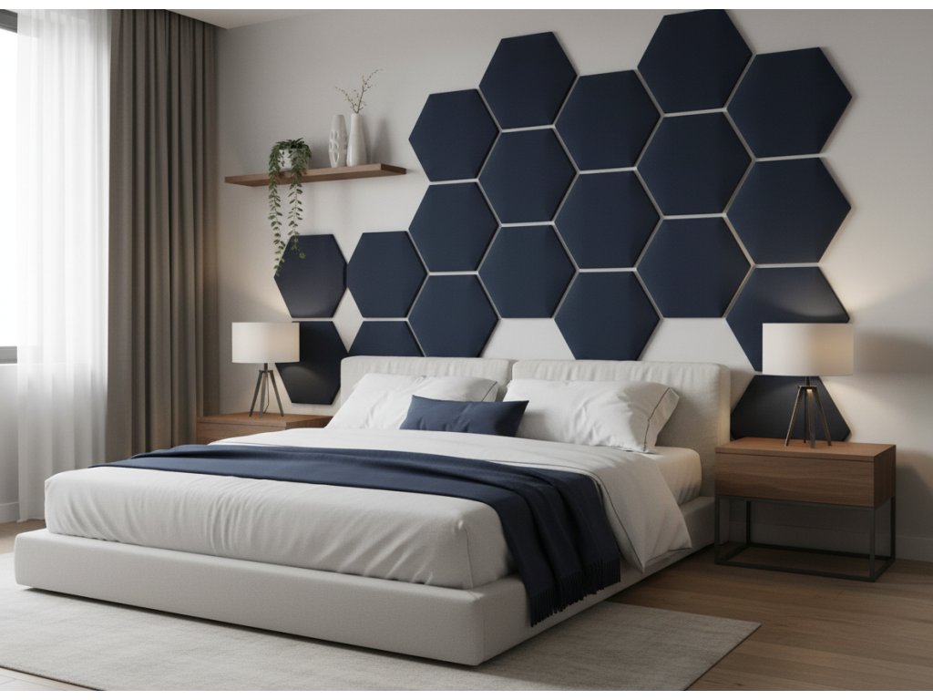 Čalouněný nástěnný panel HEXAGON 30x26 cm tmavě modrá MyBestHome