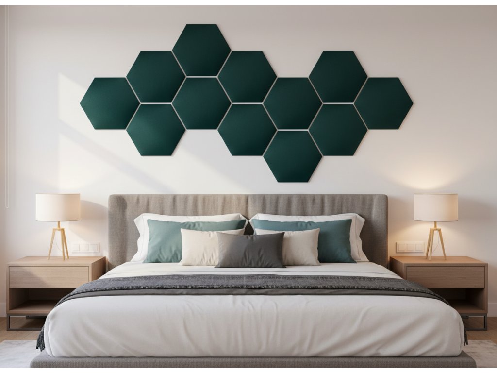 Čalouněný nástěnný panel HEXAGON 30x26 cm tmavě tyrkysová MyBestHome