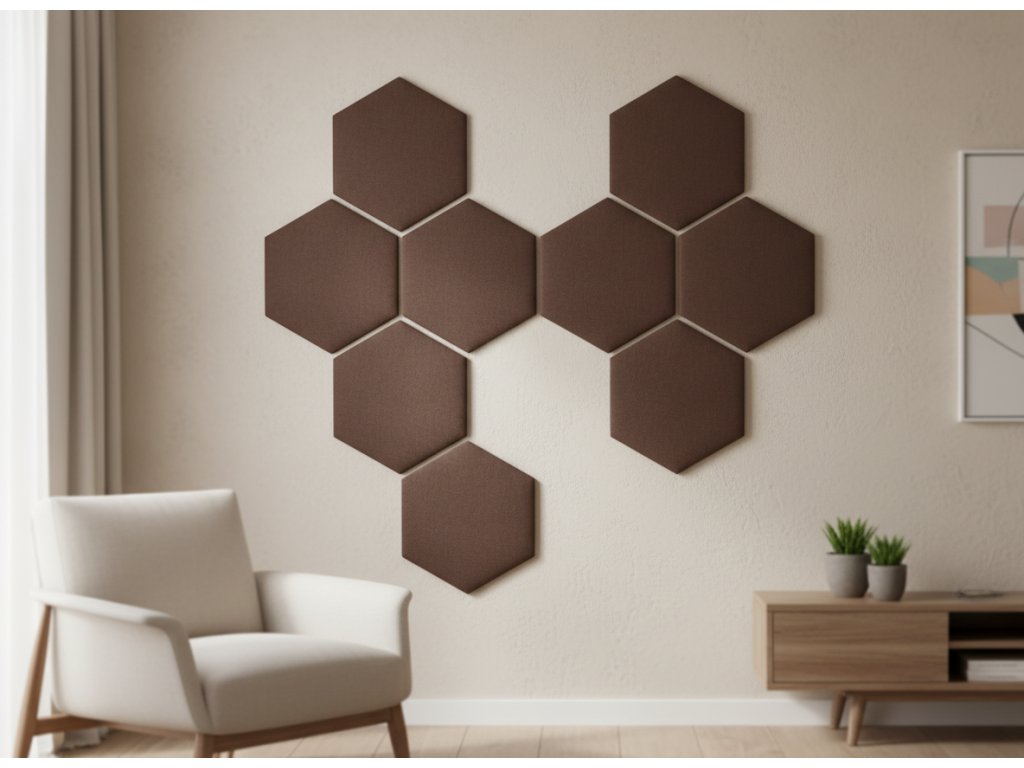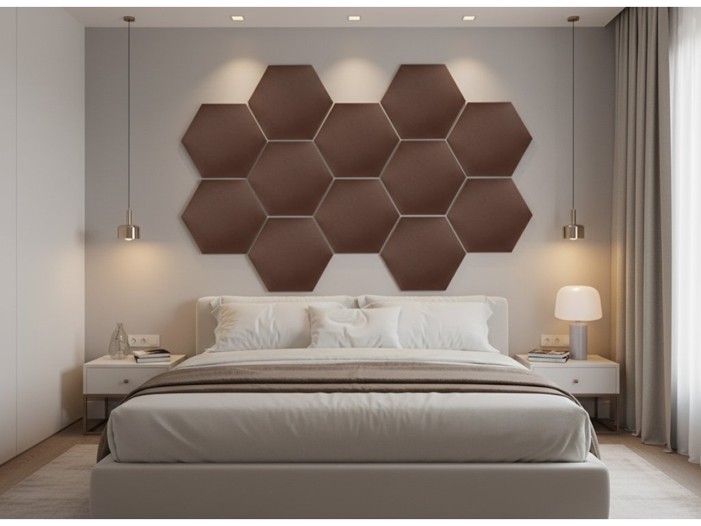 Čalouněný nástěnný panel HEXAGON 40x35 cm hnědá MyBestHome