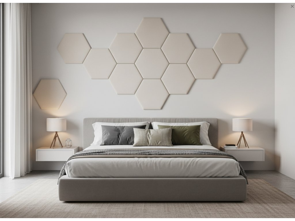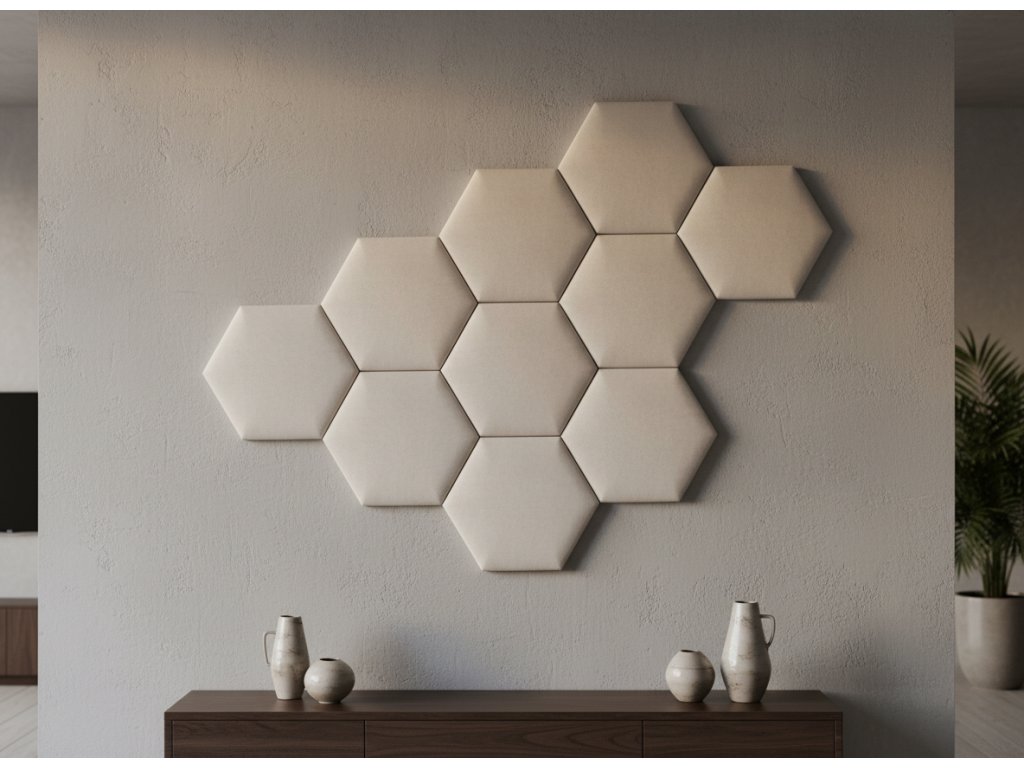 Čalouněný nástěnný panel HEXAGON 40x35 cm krémová MyBestHome