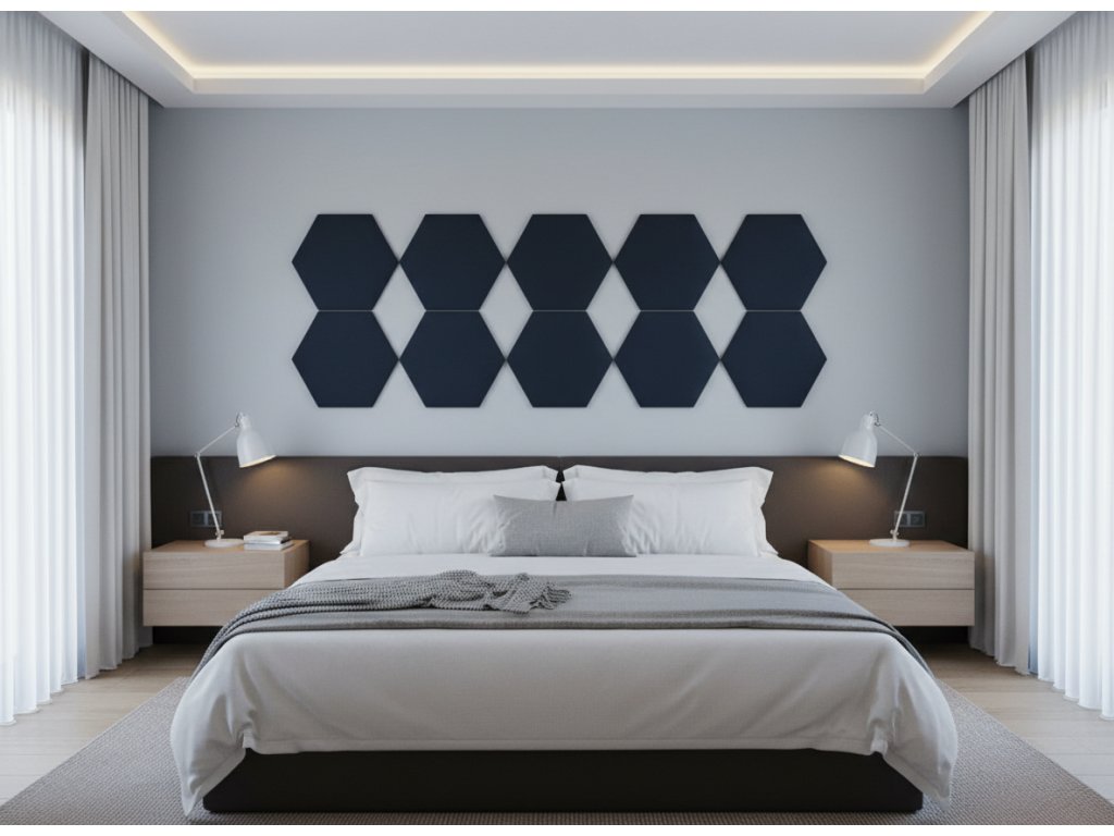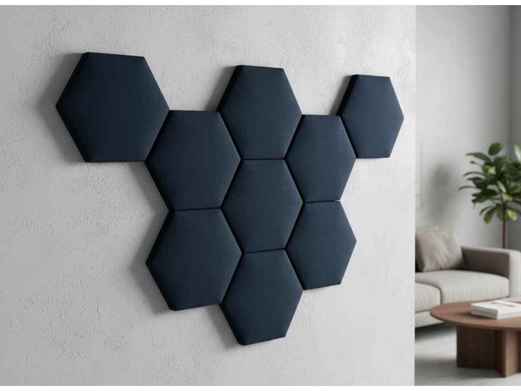 Čalouněný nástěnný panel HEXAGON 40x35 cm tmavě modrá MyBestHome