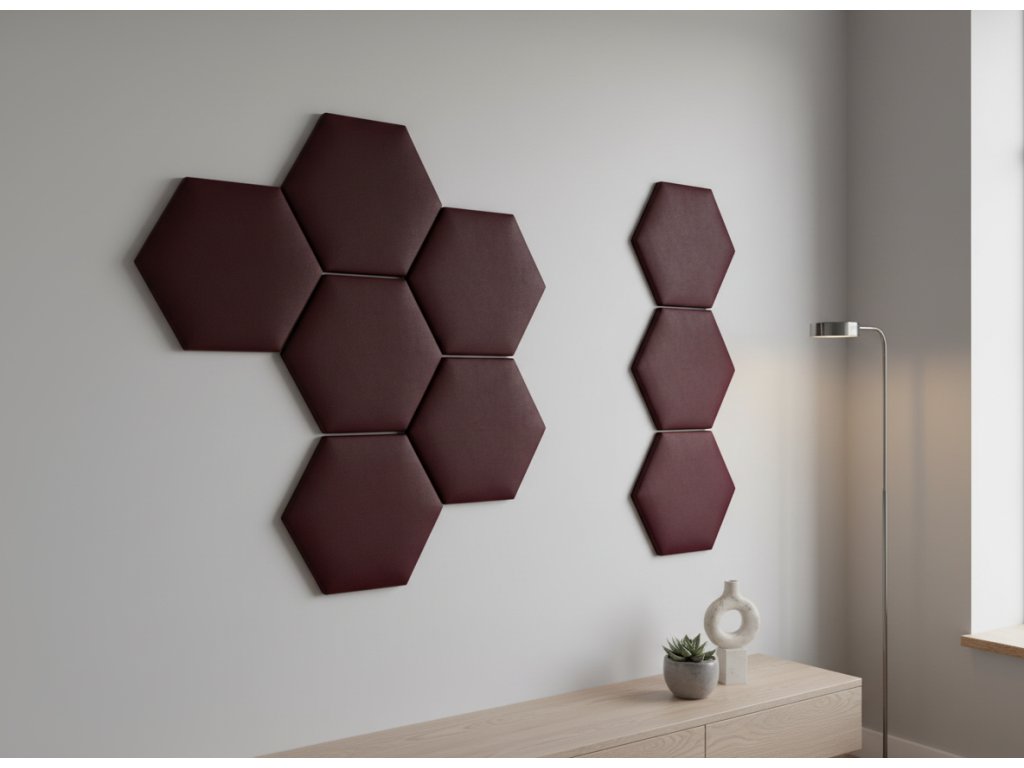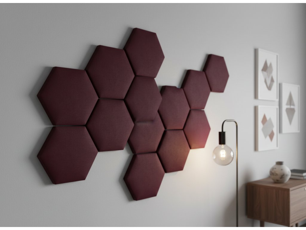 Čalouněný nástěnný panel HEXAGON 40x35 cm vínová MyBestHome