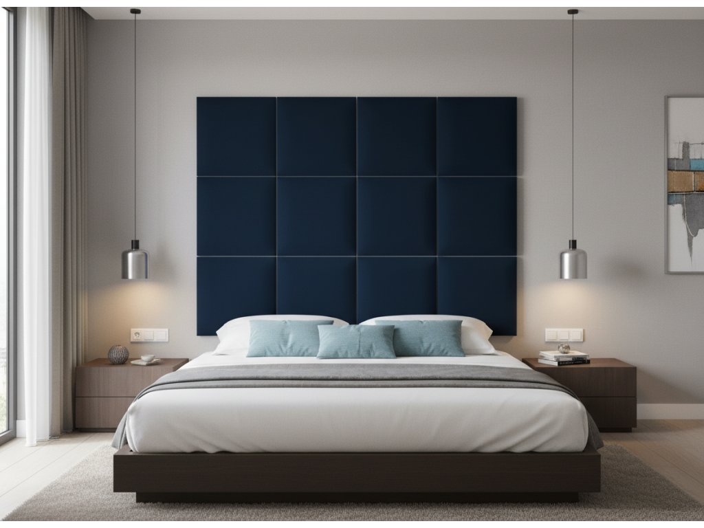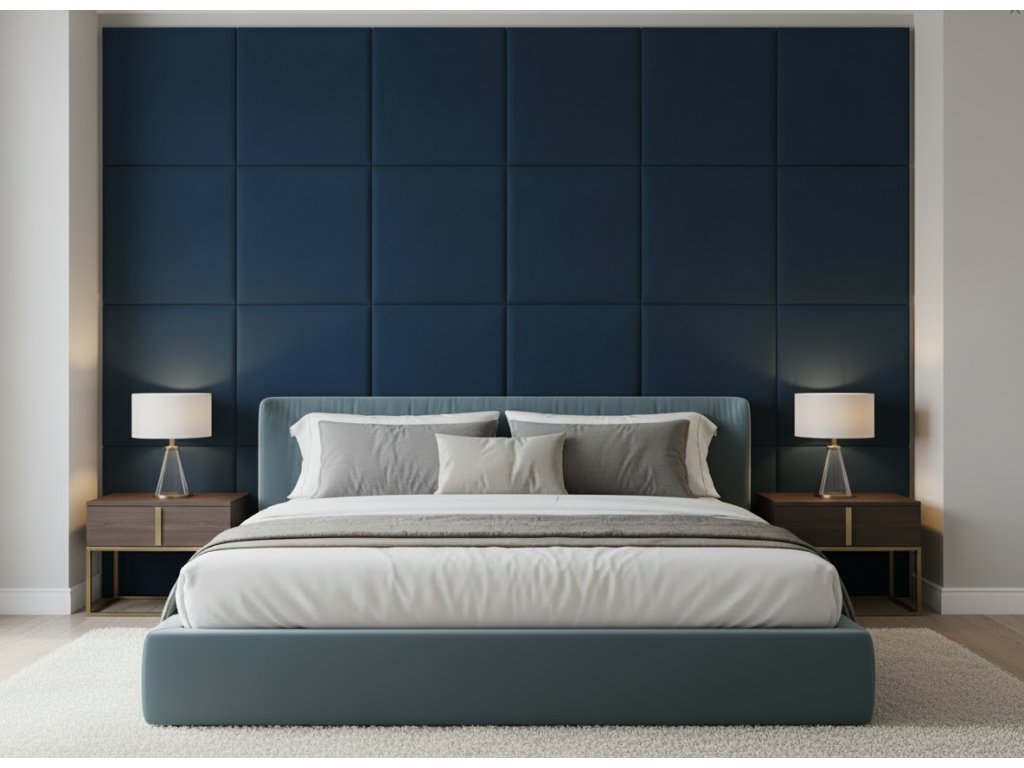 Čalouněný nástěnný panel různé rozměry tmavě modrá čtverec MyBestHome