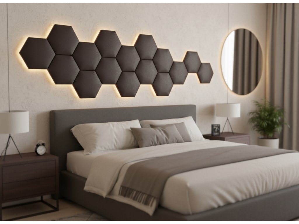 Čalouněný nástěnný panel s EKO KŮŽÍ HEXAGON 40x35