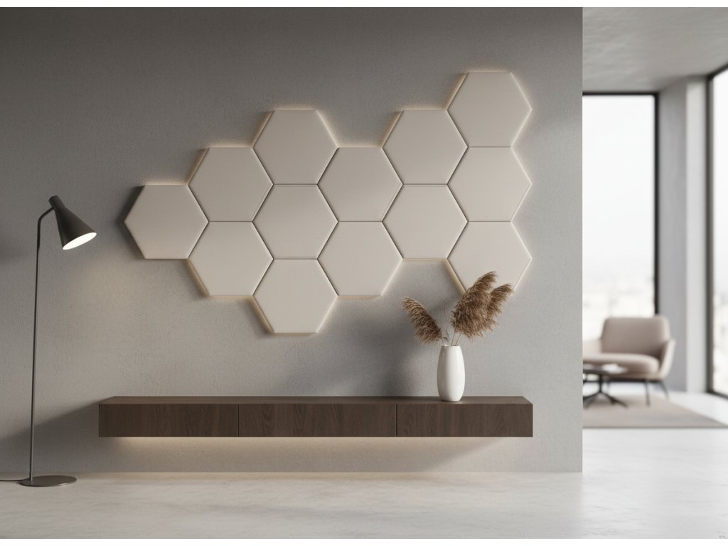 Čalouněný nástěnný panel s EKO KŮŽÍ HEXAGON 40x35