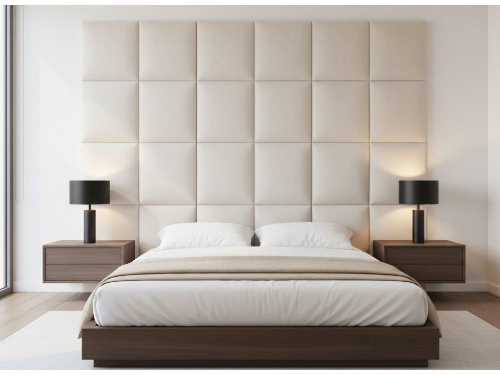 Čalouněný nástěnný panel s EKO KŮŽÍ různé rozměry krémová čtverec MyBestHome