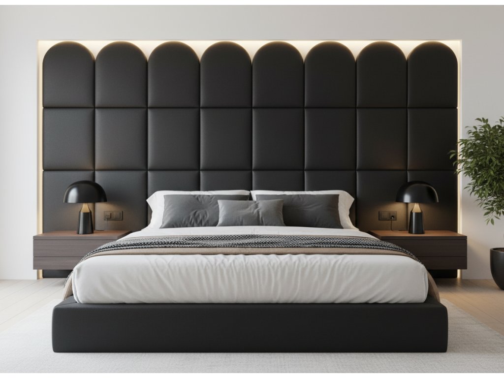 Čalouněný nástěnný panel s EKO KŮŽÍ různé rozměry x šířka 30 cm černá oblouk MyBestHome