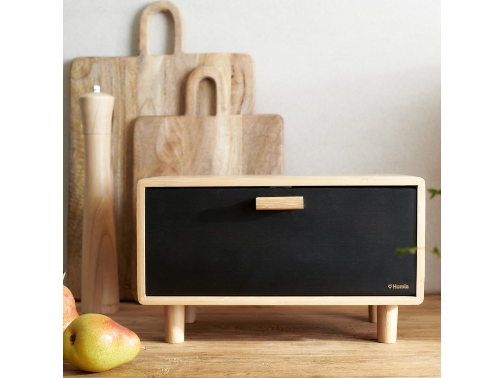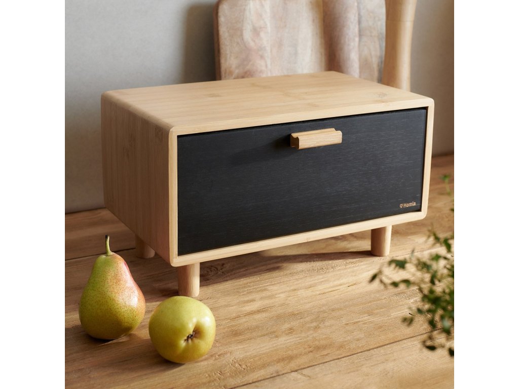 Chlebník BAMBOU má velmi promyšlený design. Má otevírací dvířka, takže obsah není vidět. V zadní části jsou vyříznuty otvory, které zajišťují větrání, chléb zůstává déle čerstvý a pomaleji se kazí. Protože je postaven na nožičce, je velmi snadné udržovat jeho okolí v čistotě, což je na kuchyňské lince, kde se připravují pokrmy, nesmírně důležité.