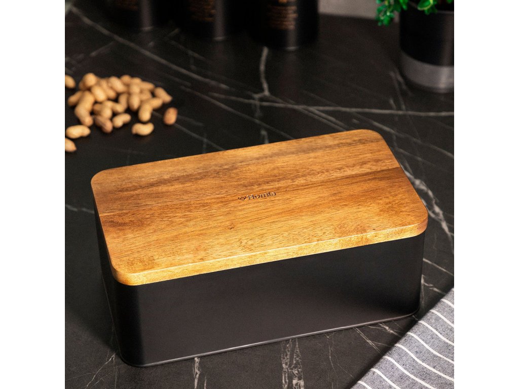 Chlebník | LOMAS | černý s akátovým víkem | 33x18x13 cm | 872506