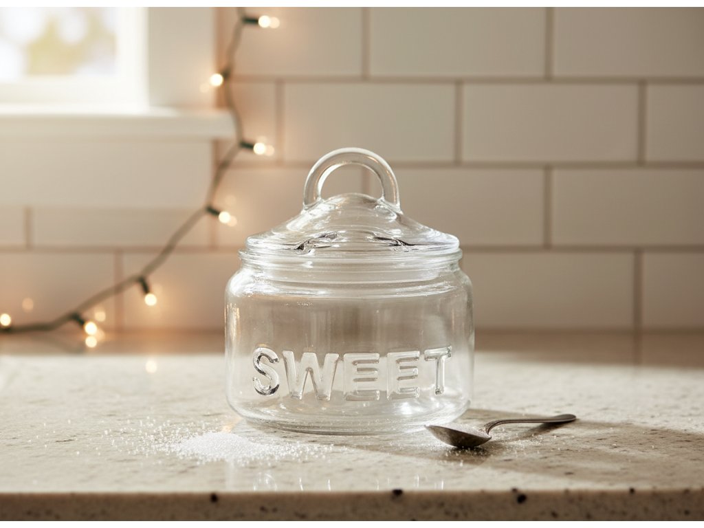 Skleněná cukřenka REGEL má originální tvar, díky němuž se skvěle vyjímá na stole mezi ostatním nádobím. Víko s velkým uchem má tvarovanou prohlubeň, takže se dá uzavřít vloženou lžičkou. Cukřenka je zdobena reliéfním nápisem SWEET.