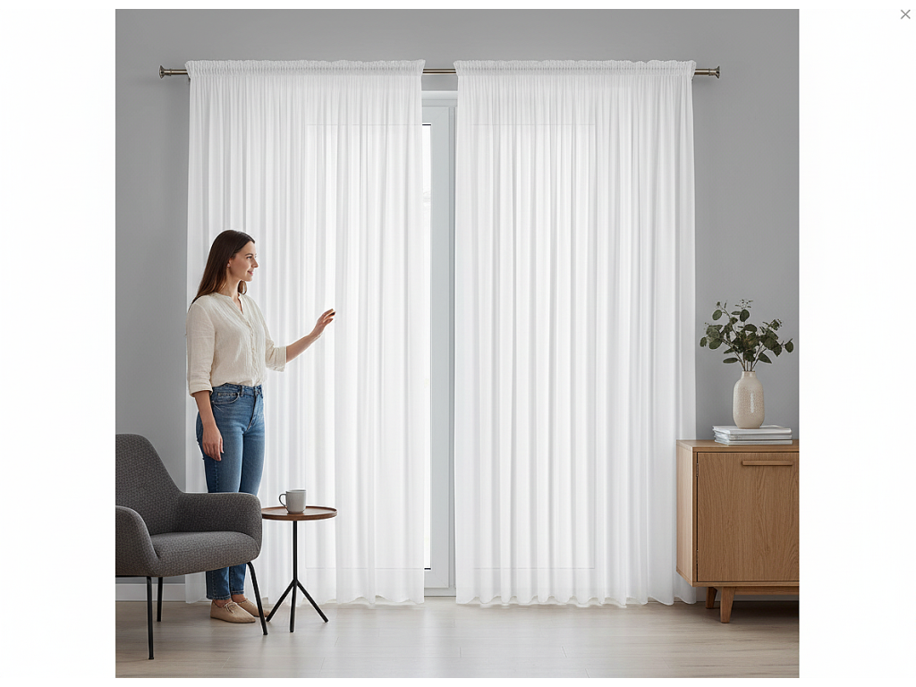 Objevte jemnou krásu, kterou do vašeho interiéru vnáší záclona z matného šifonu. Její jemná, lehce průsvitná struktura propouští světlo a vytváří v místnosti útulnou a harmonickou atmosféru. Matná šifonová tkanina se vyznačuje jemným, decentním vzhledem, který se ideálně hodí jak do klasických, tak i moderních interiérů. Záclona je připravena k zavěšení, což umožňuje snadné a rychlé osvěžení interiéru. Díky své jednoduchosti a eleganci je vynikající volbou do obývacího pokoje, ložnice nebo jídelny, kde podtrhne charakter každé místnosti. Jedná se o spojení funkčnosti s estetikou, které nadchne každého milovníka krásných detailů. Univerzální řasicí páska s tunelovou funkcí umožňuje zavěšení záclony pomocí karabinek, háčků nebo na tyčové garnýži. Tento způsob zavěšení je mimořádně pohodlný a díky němu trvá výměna okenní dekorace jen chvilku.