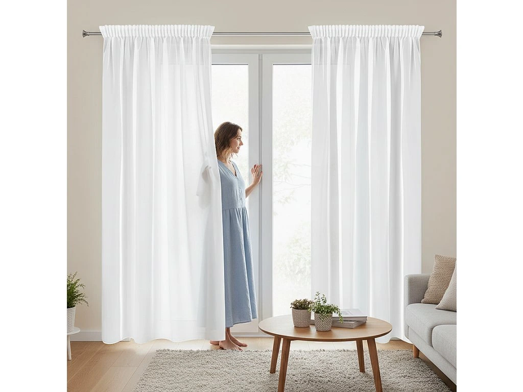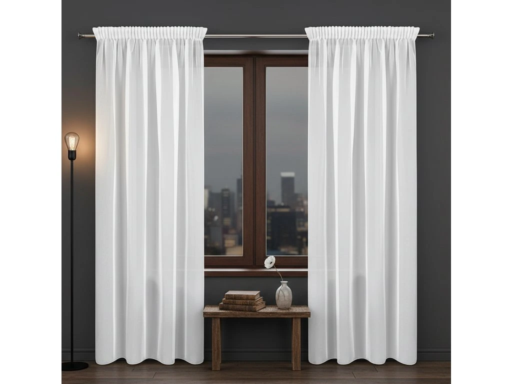 Bílá záclona z hladkého matného voálu s řasící páskou