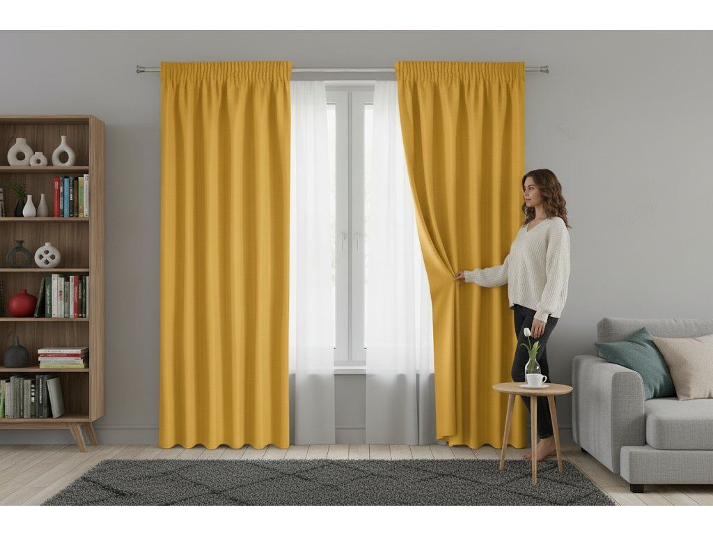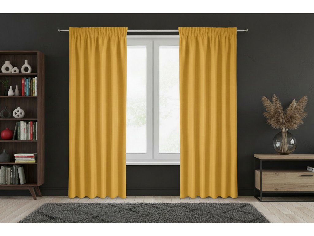 Dekorační dlouhý jednobarevný závěs s řasící páskou RAMONA mustard/hořčicová 140x270 cm (cena za 1 kus) MyBestHome