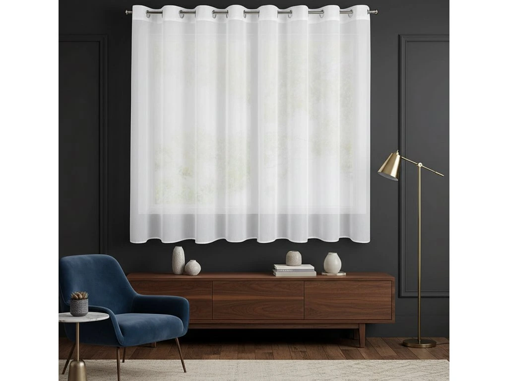 Kvalitní krátká hotová dekorační voálová záclona v moderním provedení a stylu do ložnice nebo obývacího pokoje. Záclona má kroužky pro tyčovou gárnyž. Záclona je z jemného a lehkého voálu, která opticky promění a osvěží váš interiér. Díky svému univerzálnímu charakteru se hodí jak do moderního, tak do tradičního stylu. Univerzální styl záclony se dokonale hodí k dekoracím v různých stylech; od klasických, glamour nebo romantických dekorů až po moderní skandinávské nebo minimalistické aranžmá.