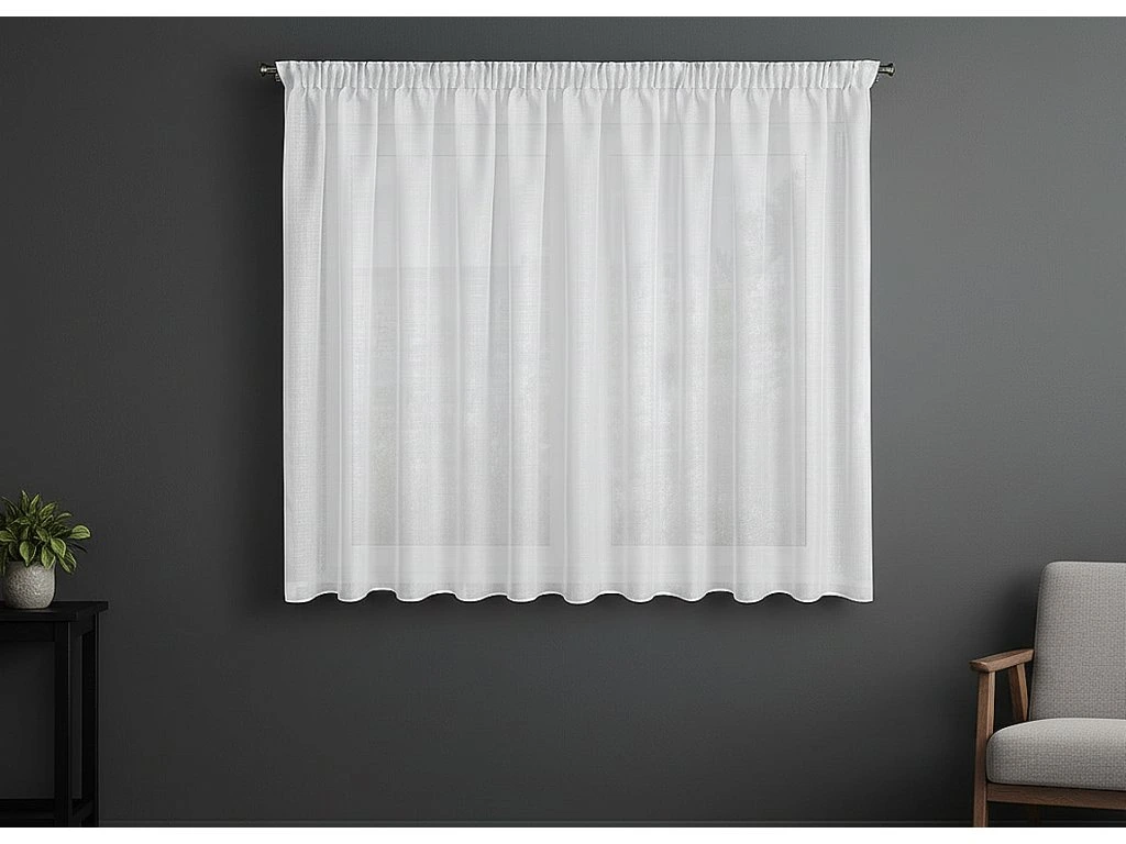 Dekorační krátká záclona je moderní volbou pro váš domov. Kombinuje jemný lesk s vertikálními linkami, které oživí váš interiér. Vhodná do ložnice i obývacího pokoje.