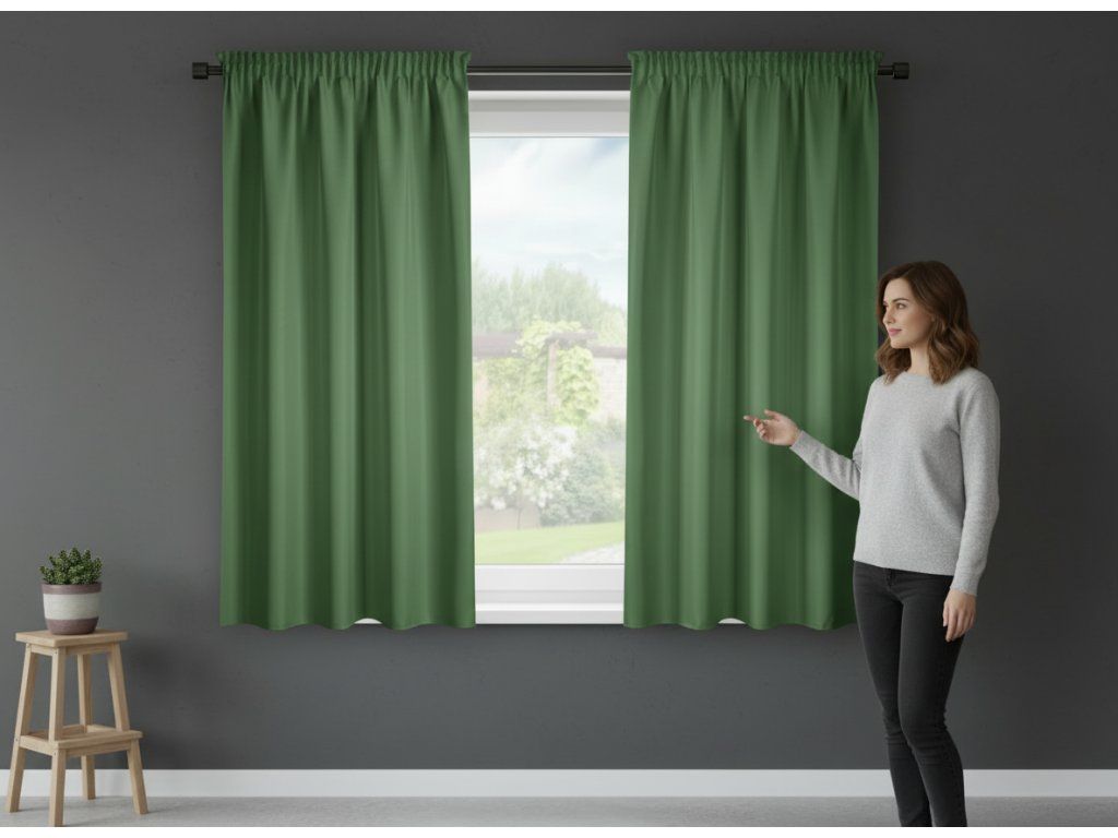Dekorační krátký závěs s řasící páskou SAMARA zelená 140x175 cm (cena za 1 kus) MyBestHome