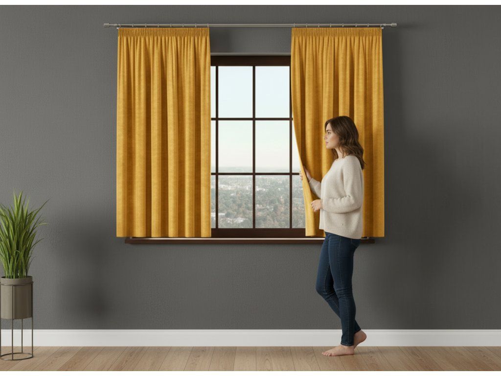 Dekorační krátký závěs s řasící páskou VALMI 140x160 cm color 019 mustard/hořčicová (cena za 1 kus) MyBestHome