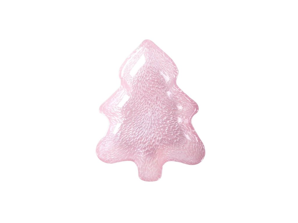 Módní růžový odstín - Nápadný tvar vánočního stromku - Stylové sklo s jemnými dekoracemi - Lze mýt ručně - Růžový dezertní talíř ve tvaru vánočního stromku, 15 cm
