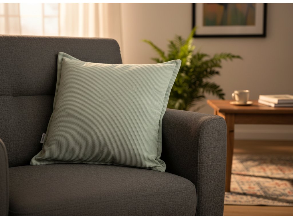 Dekorační povlak na polštář NANTU | imitace manšestru pistáciová | 45x45 | 840321