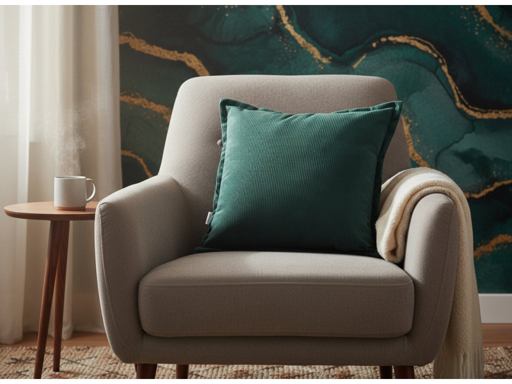 Příjemná tkanina na dotek - Krásná lahvově zelená - Skrytý zip - Rozměry: 45 x 45 cm - Zelený povlak na polštář imitující manšestr 45x45 cm
