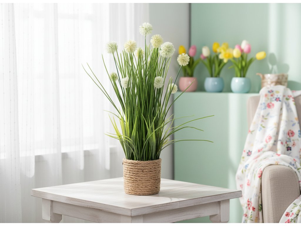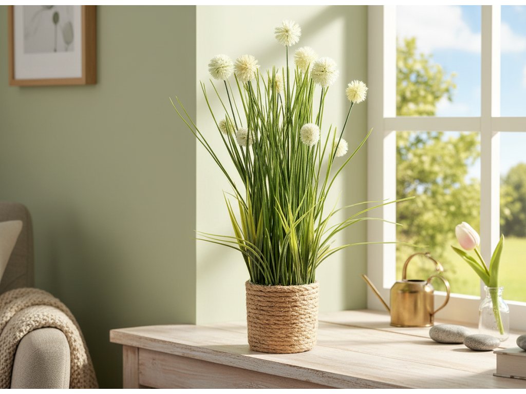 Umělá travina je dokonalým způsobem, jak dodat vašemu interiéru svěžest a přírodní kouzlo bez nutnosti údržby. Nemusíte se starat o osvětlení ani teplotu, tato rostlina bude vypadat skvěle v jakýchkoli podmínkách. Je ideální pro výzdobu obývacího pokoje, kanceláře, recepce a dalších prostor a dodá každému interiéru nádech přírody a zeleně.