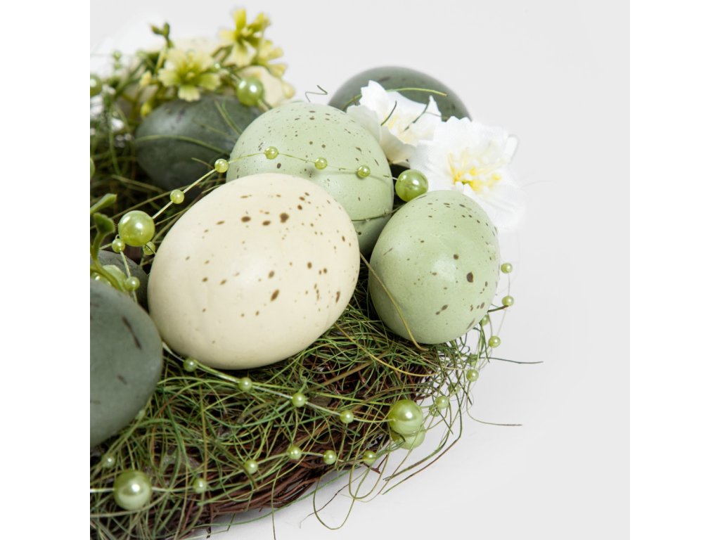 Ideální pro jakékoli prostředí - Ideální na stůl nebo komodu - Přírodní design s pružinovými akcenty - Pečlivě zpracované detaily - Velikonoční středový prvek s vajíčky 23 x 23 x 8 cm