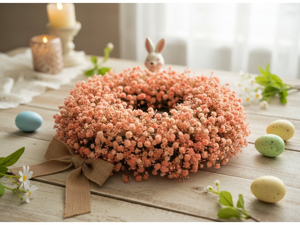 Dekorační věnec girlanda AKIM I. gypsophila růžová 36 cm 740442