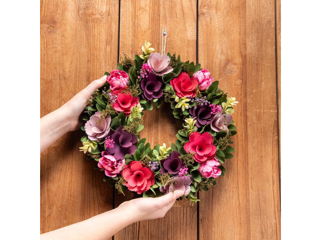 Dekorační věnec | MAZIE | s barevnými květy | 34x34x8 cm | 736445