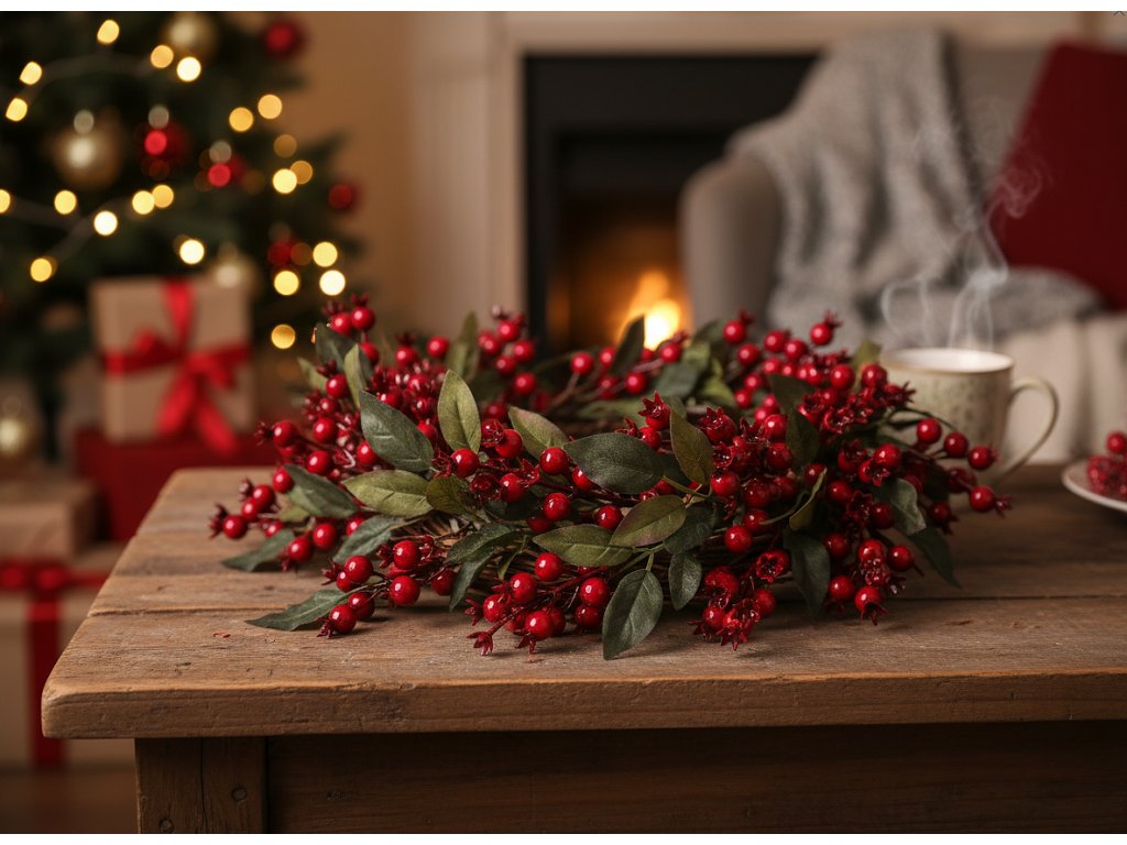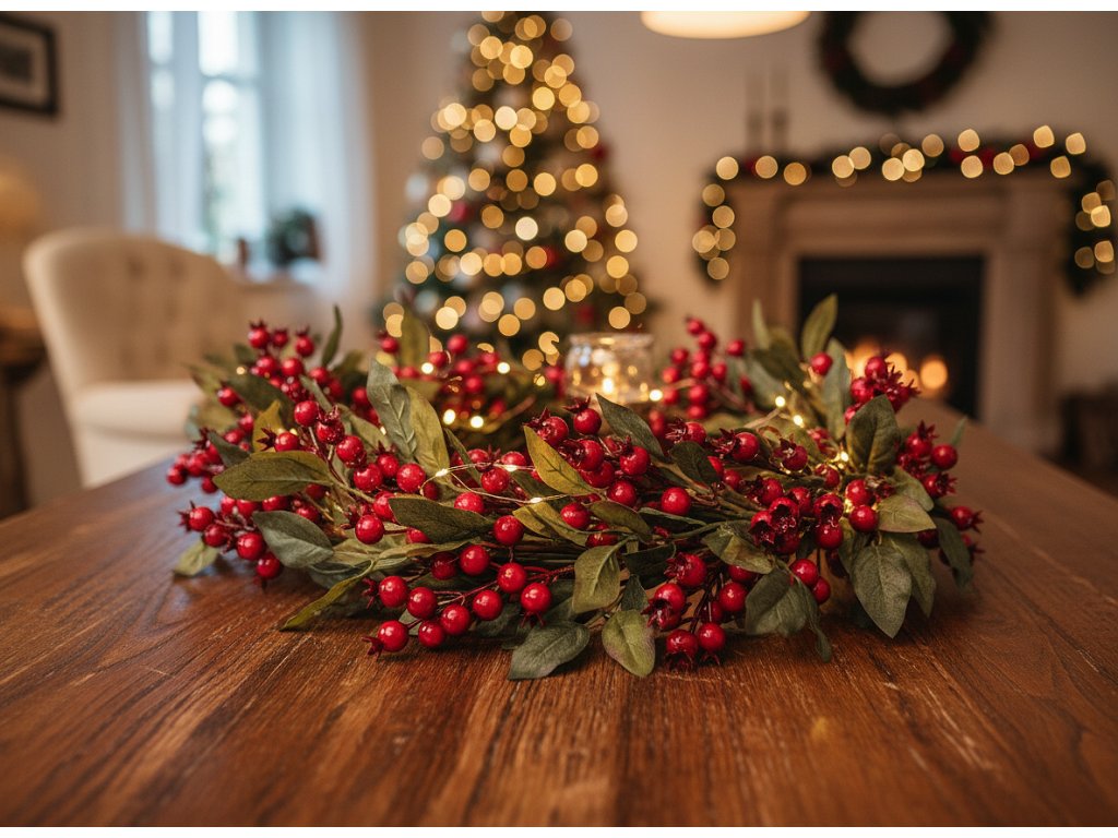 Vánoční girlanda zaujme svým přirozeným vzhledem a jedinečným složením. Červené bobule obklopené zelenými listy v kombinaci s ratanovou základnou vytvářejí harmonickou dekoraci, která dokonale zapadá do vánoční atmosféry. Girlanda bude perfektní pro vánoční aranžmá. Její syté barvy a přírodní vzhled doplní vánoční výzdobu vašeho domova. Dokonale ladí s ostatními dekoracemi a dodává každé místnosti přírodní zimní kouzlo.