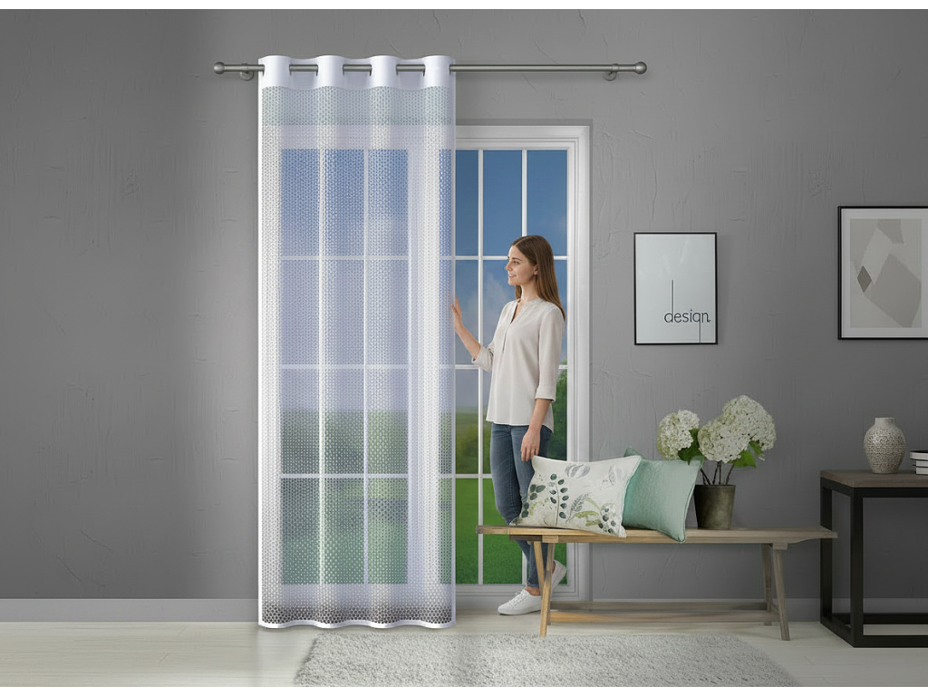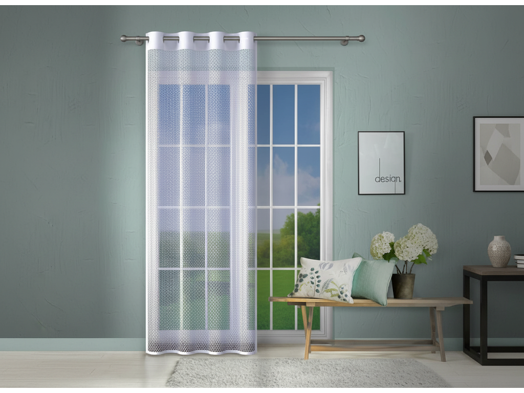Dekorační vzorovaná záclona s kroužky EVITA bílá síťovina 140x250 cm (cena za 1 kus) MyBestHome