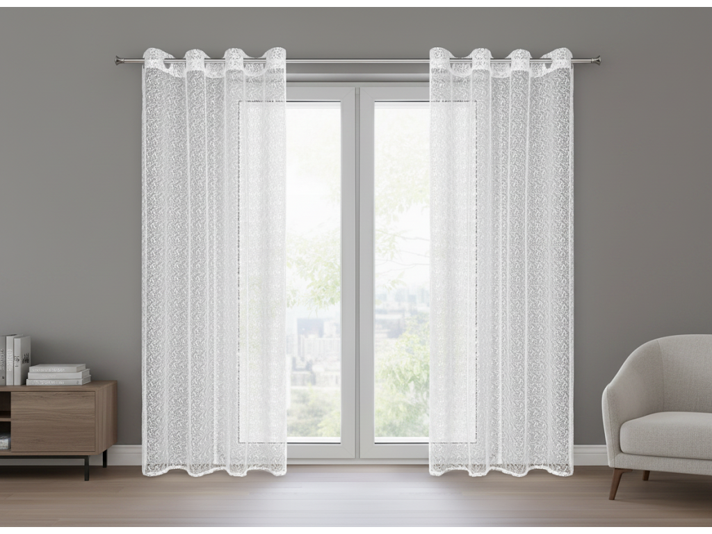 Dekorační vzorovaná záclona s kroužky KAISA bílá volná síťovina 140x250 cm (cena za 1 kus) MyBestHome