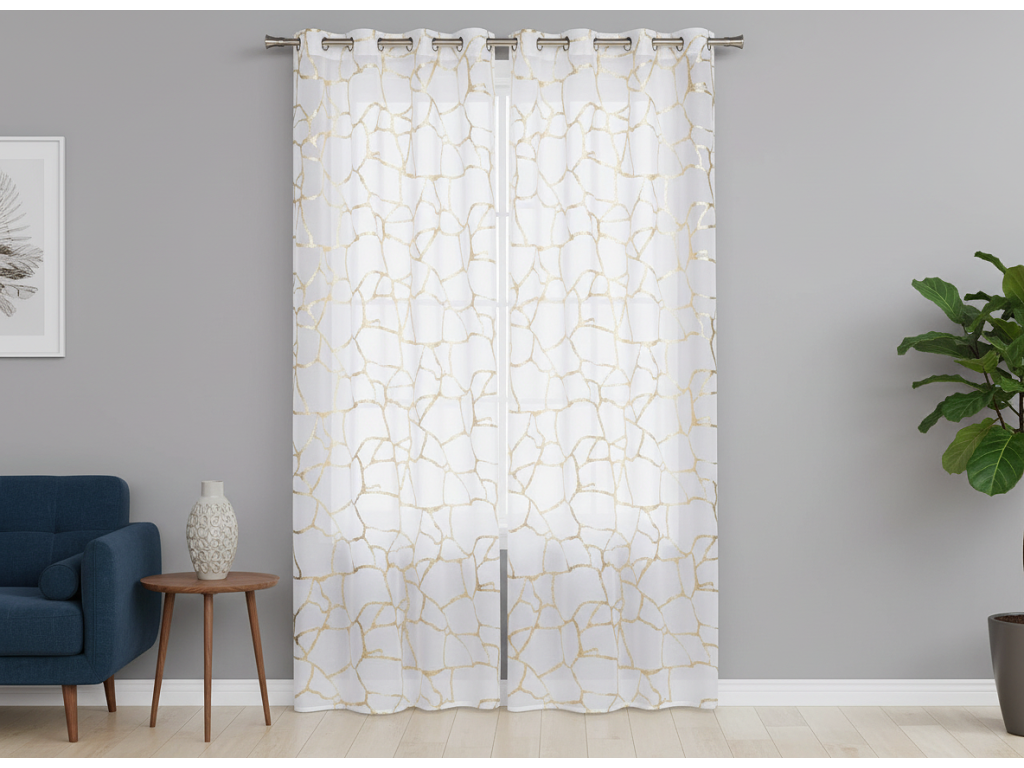 Dekorační vzorovaná záclona s kroužky WUSTE bílá zlatý potisk 140x260 cm (cena za 1 kus) MyBestHome