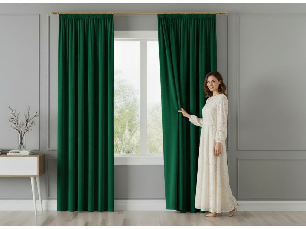 Dekorační závěs s řasící páskou VALMONT 140 cm x 250 nebo 260 cm color 010 zelená (cena za 1 kus) MyBestHome