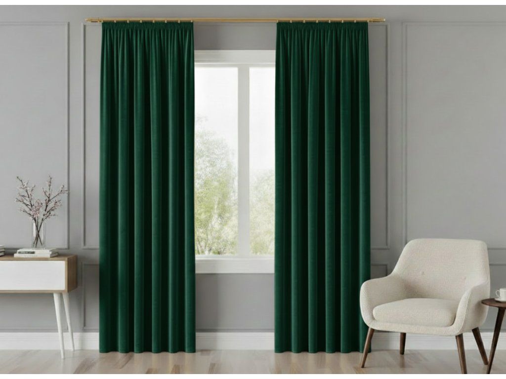 Dekorační závěs s řasící páskou VALMONT 140 cm x 250 nebo 260 cm color 012 smaragdová (cena za 1 kus) MyBestHome