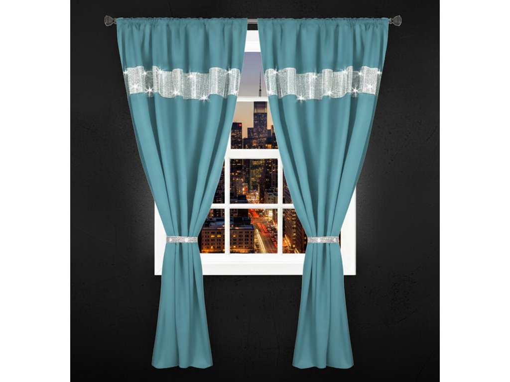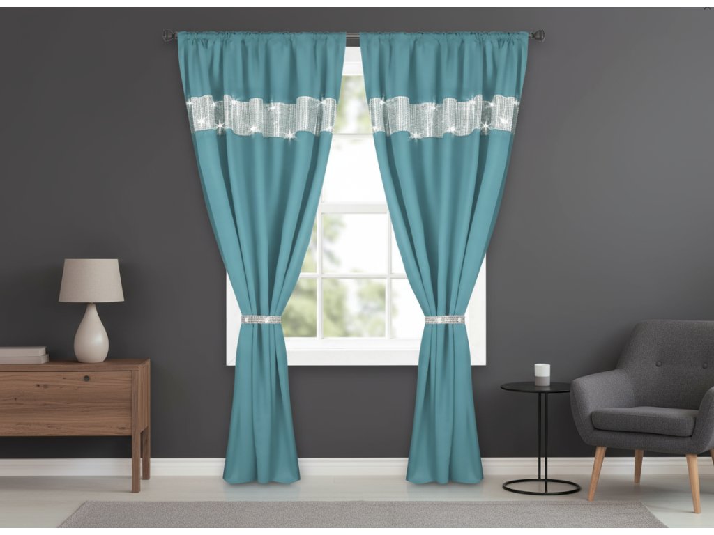Dekorační závěs se zirkony s řasící páskou AURORA tyrkysová 145x250 cm (cena za 1 kus) MyBestHome