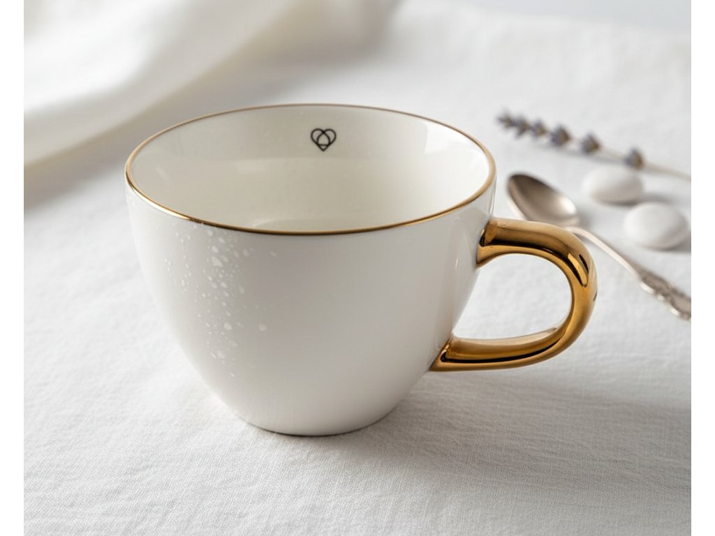 Elegantní design v bílém odstínu - Objem 0,35 litru - ideální pro vaši oblíbenou kávu nebo čaj - Vyrobeno z vysoce kvalitního porcelánu - Jemná zlatá rukojeť