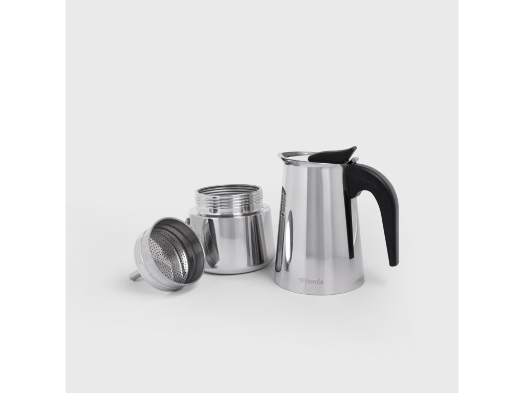 Nerezová ocel je odolná vůči vysokým teplotám a korozi. Kvalitní plastová rukojeť zajišťuje pohodlnou a bezpečnou manipulaci. Výrobek je určen pro styk s potravinami. Kapacita: 9 šálků espressa, doporučujeme ruční mytí, pro všechny typy sporáků.
