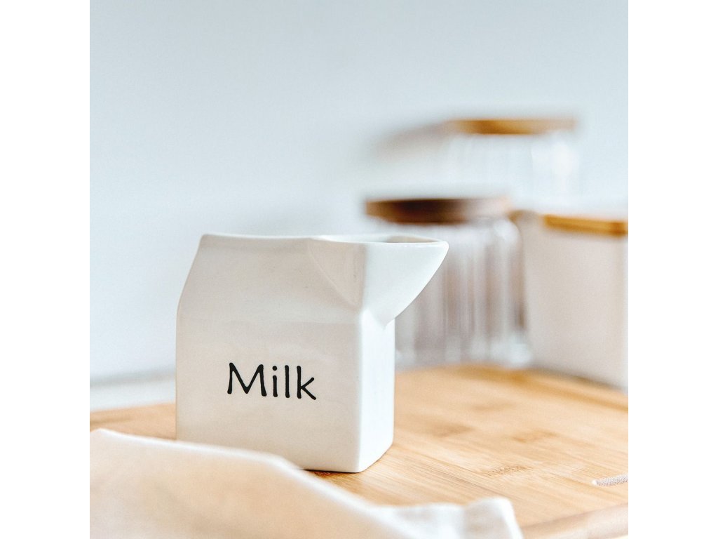 Konvička na smetanu o objemu 200 ml - Originální tvar připomínající krabici od mléka - 200 ml šálek na mléko z bílého porcelánu