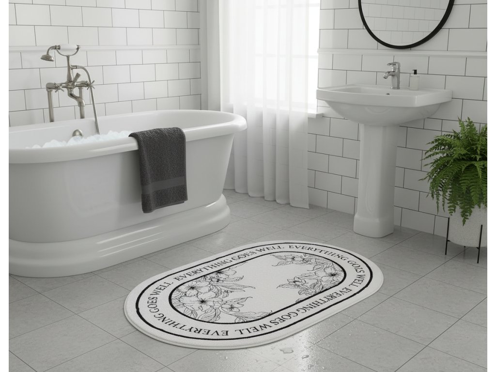 Dodejte své koupelně jedinečný akcent s krásnou předložkou PUELLA. Díky elegantnímu černobílému designu s květinovými detaily a motivačním sloganem je nejen praktická, ale také okouzlující. Je ideální do všech typů koupelen, od moderních až po klasičtější, a bude je krásně zdobit.