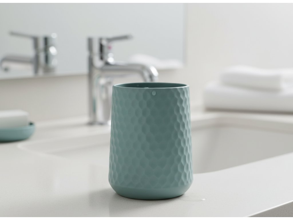 Díky svým kompaktním rozměrům je hrnek ideální jako organizér na zubní kartáčky, kosmetické štětce nebo jiné koupelnové doplňky. Snadno se vejde na jakékoli umyvadlo a pomáhá udržovat pořádek a estetiku. Hrnek je vyroben z odolného plastu s matným povrchem, který je odolný proti vlhkosti a velmi snadno se čistí.