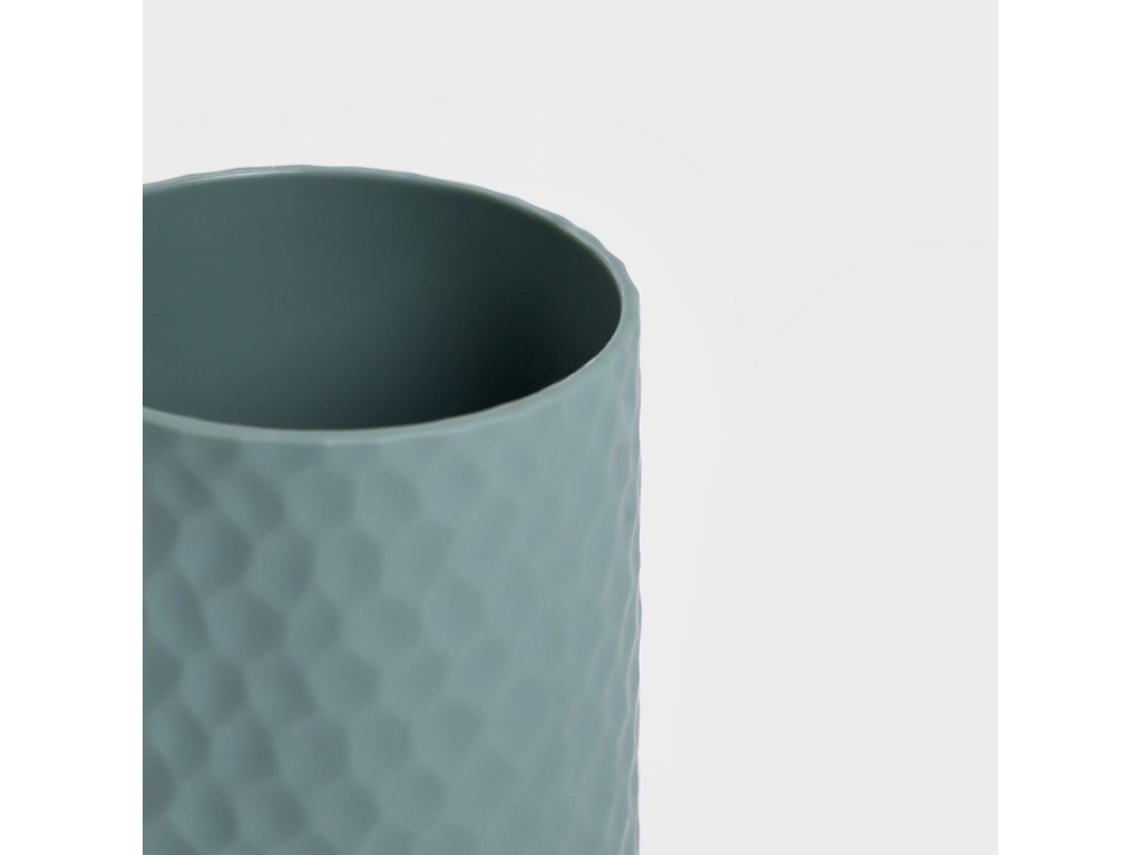 Tlumený odstín zelené barvy, který ladí s moderním interiérem. - Ideální pro uložení zubních kartáčků nebo kosmetických doplňků. - Koupelnový hrnek zelený 8,1 x 8,1 x 10,5 cm