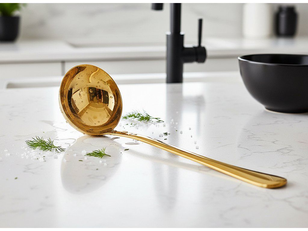 S naběračkou můžete elegantně servírovat polévku nebo omáčku. Je ideální pro slavnostní setkání a rodinné večeře. Díky zlaté barvě vypadá velmi stylově a díky minimalistickému designu se bude snadno hodit ke každému pokrmu.