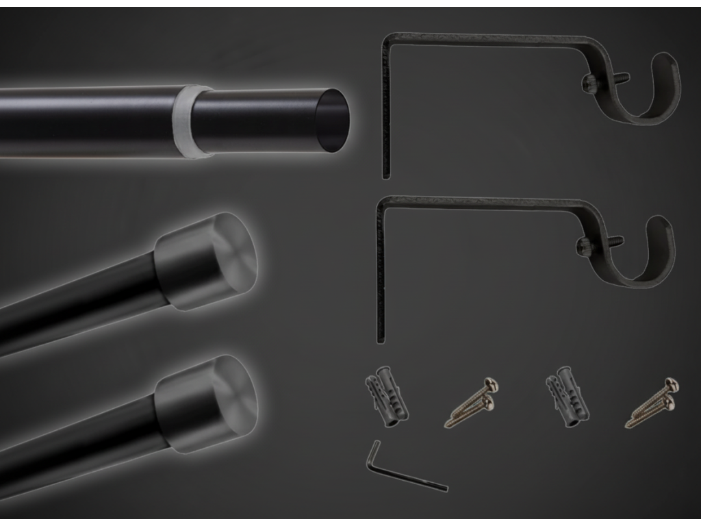 | Obsah balení: | 1 tyč, 2 koncovky, 2 konzole se šrouby, sada montážních šroubů a hmoždinek |