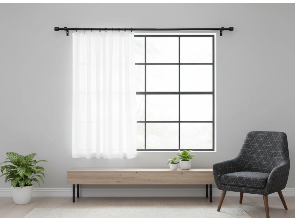 - Záclonová tyč z masivního kovu zajišťuje dlouhodobé používání