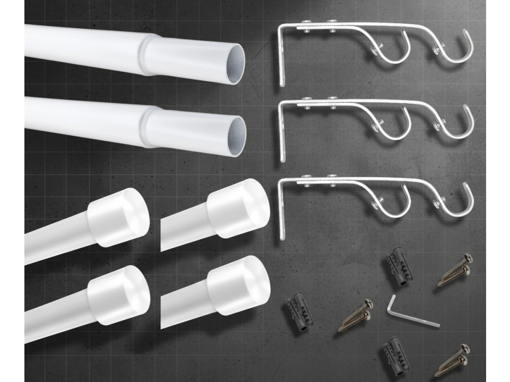 | Obsah balení: | 2 tyče, 4 koncovky, 3 konzole se šrouby, sada montážních šroubů a hmoždinek |