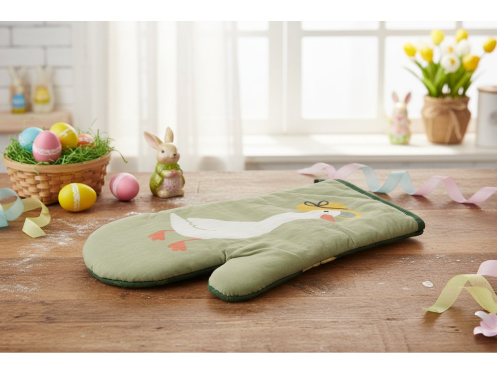 Kuchyňské rukavice jsou vyrobeny z materiálu, který dobře izoluje teplo, například z bavlny. Doporučujeme zvolit design, který se vám líbí a který ladí s ostatními dekoracemi ve vaší kuchyni. Rukavice jsou dodávané s praktickými poutky pro zavěšení.