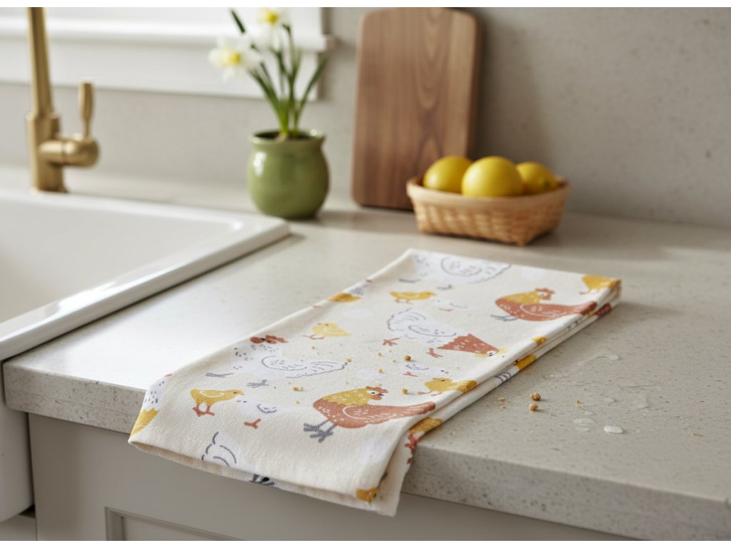 Kuchyňská utěrka ze 100% bavlny s velikonočním motivem je praktickým pomocníkem i krásným doplňkem, který zpříjemní každodenní vaření a pečení během svátků.